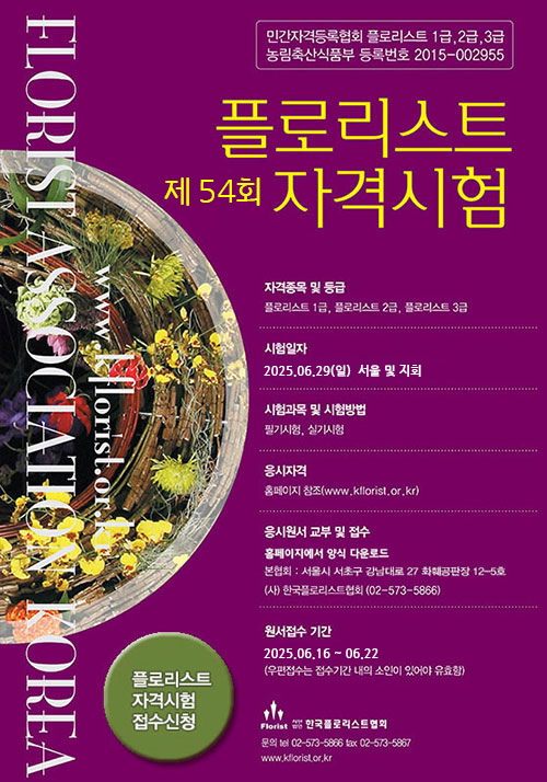 3. 응시료 입금 계좌 :  농협 044-01-098491 플로리스트
